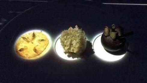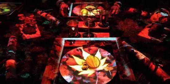 这个餐厅的昂贵,可不只是因名厨坐镇。20道菜经店员数小时的准备,每顿仅服务12人,极具灯光效果和科幻味十足的料理试验,将从360度激发嗅觉、听觉、味觉、触觉多道感官。从入门后依据餐桌投影找到位置就坐到VR眼镜点餐,每个步骤都像是身临科幻艺术展,这还没完,随着背景音响起,室内温度、湿度甚至是气味都会随不同调和品而改变,食物奇形怪状,是第一口之前永远想不到的美妙味道。